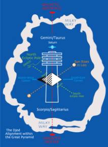 It was as if we discovered that Fulcanelli was not only was still alive and well, but also had fronted a rock group in the 1960s. In one such segue of pure weirdness during the writing of this article we thought we had found just such an event. One hit wonder band ? and the Mysterians, who performed masked, had a Number One with a bullet hit on the pop charts in September 1966 with Ò96 Tears.Ó We considered, briefly, that this was a reference to the INRI/270 years, 1/96th of the precessional cycle, of the DjedÕs alignment. Also, if we considered each square on the face of the 64 cube as a tear, or tear, in the fabric of reality, then ? was singing about the cosmic cube of the Throne of Osiris. Mercifully, this fancy passed quickly when we discovered the original title was Ò69 Tears.Ó But the Grateful Dead connection could not be so easily dismissed. Its mythic qualities blended nicely with the actual events and their astronomical relationship to the moment of galactic alignment. And it was all archetypal, orchestrated from some deeper, higher, further level with virtually no conscious awareness. The legend begins with the name itself, grateful deadÉ In 1969, Jerry Garcia described the moment of revelation: ÒBig black letters edged around in gold, man, blasting out at me, such a stunning combination. So I said, ÒHow about Grateful Dead?Ó The band didnÕt like it, but the hippies did, and so the name stuck. The phrase is actually a folkloric motif tag for a tale found in many cultures, that of the simpleton, a fool, who gives his last penny to a corpse to aid his journey into the land of the dead. The resurrected dead man subsequently rewards the fool for this act. This motif can be found, with minor changes, in New Kingdom Egyptian papyri. In these tales, the dead and resurrected protagonist is Osiris, the original grateful dead. Sometime in the mid 1970s, the rumour begin that the name actually came from the Egyptian Book of the Dead, The Book of Coming Forth Unto Day. While mentions of the dead are found in this text, one would have to stretch to find a translation that would fit Ògrateful dead.Ó Rock Scully in his memoir Living with the Dead quotes an unreferenced saying from someoneÕs version, which, while it may not be literal, is nonetheless moving and significant. ÒWe now return our souls to the creator and as we stand on the edge of eternal darkness, let our chant fill the void, that others may know: In the land of the night, the Ship of the Sun is drawn by the Grateful DeadÉÓ All of this would be simply the mythic maundering of a psychedelic rock band except for the curious timing and location of their Egyptian concert. The idea had been in the wind since before the bandÕs beginning. By early 1976, it had become a project, and by the summer of 1978, all the pieces were in place. The Grateful Dead would play three concerts in the Sound and Light Theatre in front of the Sphinx with the pyramids of Giza as a backdrop. By coincidence, the third night, September 16th 1978, was a full lunar eclipse. As the Dead played to 1,500 people, half western, half Egyptian, the eclipsed moon hung in the sky above the Great Pyramid. To many of the Dead family, it was the highlight, and perhaps the high point, of their long strange trip. But the band played badly, the piano was consistently out of tune, and the trip was never turned into anything even vaguely commercial. A cheap tour book and some bootleg tapes are all that remain. It was the moment, the experience that was important, well worth the half of a million dollars it cost, according to Jerry Garcia. ÒIt didnÕt matter. We had a wonderful time, man, we really didÉÓ So, an American band from California, with a name that derived ultimately from a folktale about the resurrection of Osiris manages, to perform in Egypt in front of the Sphinx during a full lunar eclipse. Strange as that may be, the true weirdness lies in the timing of the event and its connection to the Great Djed of Osiris, and his moment of resurrection in the Duat. As we noted above, the galactic meridian returned to its exact degree of precessional opposition in 1996. Observationally, the 1/4 of a degree on either side could be considered as exact enough. To understand this how fine a measurement this really is, we need to visualize a 3cm wide paper matchbook held at the distance of one mile. That is what 1/2 a degree of arc looks like to the naked eye. The 1/2 a degree of space covered by the precessional motion of the Djed alignments takes 36 years of time to complete. With 1996 as the midpoint, then 1/4 of a degree, 18 years, before and after is the width of the alignment. Eighteen years before the zero point of the fall equinox of 1996 takes us back to 1978. Since we need a marker point to measure such a fine degree of alignment, it is synchronisitically convenient that there should be a lunar eclipse close to the target point of the last 1/4 of a degree of alignment, the fall equinox of 1978. The eclipse fell on September 16th, just 5 days before the equinox. With measurements these fine, a few days are insignificant. The lunar eclipse point is simple and unmistakable and the roughly 18-year span between eclipses makes it perfect for counting the years of the Djed alignment. The lunar eclipse in 1978 is the start point, the lunar eclipse of September 27th 1996 is the midpoint and the eclipse of October 8th 2014 is the end point. This gives us an error of only 22 days over 36 years. The Grateful Dead performed as the moment of the galactic alignment, the return of the ancient gods of Egypt playing out their precessional drama in the sky, began its 24-year trip toward the moment of completion on the fall equinox of 2002. Before 1978, India and the Far East were seen as the source of hip spirituality, and Egypt was where mummies chased 1940s comedians across the burning sands. After 1978, this slowly began to change, until now, as I write this, Fox Tele