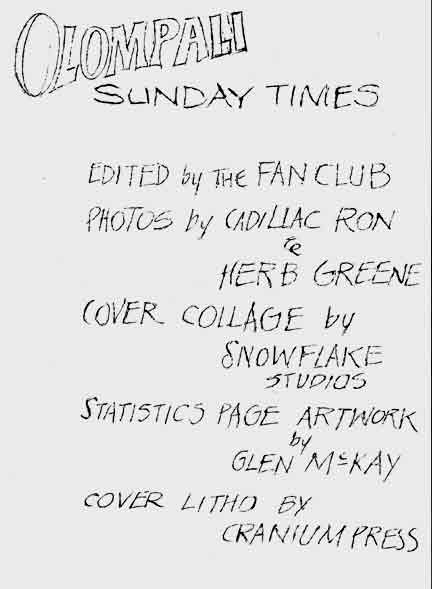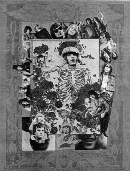 You can't really understand or fully appreciate The Grateful Dead, unless you are aware of what they are spokesman for. The scene in S.F. is largely generated by the rock and roll. It is the means of income or the whole community. It started with the young people getting turned-on by the rock music at the Fillmore and Avalon. Then, before long it began to follow them home, very soon it was definitely part of their lives, how they are dropping-out of suburban home life, high-school society, and coming to the big, weird city. In Haight-Ashbury where the bands home is, the streets are filled with young people who are concerned with the well-being of each other, and the rest of the world too. They know that in order to get the whole planet as peaceful and free as their own society, they Post BE what they preach. They live peace and love, They share food, cloths, cars, dope, and anything they own. They element of EGO has been reduced --- people are becoming more tolerant and calm-- there is a feeling in the air of sharing, just because that is so much more positive than being selfish. The negative attitude is being forced out of existence. Walking down Haight St. is glorious. You see after smile. The only perplexed faces are the middle-aged tourists who aren't sure just what to think. They are handed flowers, oranges, printed poetry, and all sorts of nice things. They leave knowing that they saw -, new idea working ---an idea that they never allowed to think-- They never hod the chalice to be mentally free. it inherited the evil and "out chose to ignore them to death- - rather thin to try and kill off everyone who does not see Utopia as we do. All this love has several points - one big one is the Dead. They were the first to play in the Park for free, now it is happening every took-end, and sometimes during the week---- all the top bands, all the little bands, and every-one turned-on in the bay area got together and rave for a day. the movement of Joy is spreading, and we are glad to be a part of it. In the past several month, the DEAD have been doing filming for two very interesting and different programs. The first one filmed was with a crew from England's BBC. The film, called "THE SCENE" (to be shown July 17) will be the first color TV broadcast in England. The show included shots of the Dead at home, at the Avalon Ballroom, and in a new S.F. rock club, The Rock Garden. The more recent filming, was in Richard Lester's new movie "PETULIA", starring Julie Christie and George C. Scott. The band was in one scene being San Francisco atmosphere, and in another scene they were playing live in a warehouse here in the city. (VIOLA LEE BLUES is what you'll hear in the movie.) HERE IN S.F .... During the month of April, Sunday afternoons meant thousands of tourists on foot and in their cars jamming the streets in the Haight-Ashbury. Tourists came to look at the hippies, and the hippies came to see if tourists really came to look at them. People just looking at each other in the street on a beautiful, sunny after noon, with nothing to do, and nowhere to go. In an effort to make people happy by giving them something to do, the Dead played unannounced in the Panhandle of Golden Gate Park on a flatbed truck to anybody who would come and listen to them. Needless to say, people were much more interested in spending an afternoon in the park listening to music for free, than walking in the crowded streets looking at each other. Sunday afternoon, Saturday afternoons, and sometimes during the week, various bands from the area play to whoever wants to listen amongst the sun and trees in the park. June 1, the band goes to New York City. The first time that N.Y.C. will hear the Grateful Dead, will be in the park. After playing there for free one afternoon, they will start a two week job at the Cafe Au Go Go. They will return several days after their two weeks is up, just in time to attend and perform in the Monterey International Pop Festival on June 16,17, and 18. The Festival seems to be the biggest thing happening all over the country in the filed of popular music. The Festival is a non-profit happening with proceeds over expenses going to San Francisco community efforts like the Diggers. "Tellers of Tall Tales" Lead guitarist, Jerry Garcia, known to San Franciscans as "Captain Trips'' because of the excursion boats he once piloted up the Sacramento River, was born in Mazatlan, Mexico, of Spanish noble parents. They fled their native country during the Civil WAS after their nutmeg plantation was burned and looted. But soon after Jerry's birth, they were assassinated in an obscure Chilean coup attempt, and he was left to be raised by a wizened OLD Hopi lady, assisted by a pack of wolves, who immediately accepted the little Garcia as one of their own. Many acute listeners have identified, in Garcia's far-out solo runs evocations of long-remembered Hopi chants. Jerry spoke no English until 1957 when he moved into ban Francisco's Hopi colony. A graduate of the San Francisco Academy of Stringed Instruments, he began his rock-and-roll- career doodling with the radio on the Thresher, the converted mine-sweeper with which he took weekly tourist excursions between Stockton and Oakland. Now he belongs to the ages. Bass player, Phil Lesh, was well-known to two generations of American youngsters as the loveable lass Frances of "Ding Dong School". Lesh's remarkable ability at characterizations was further demonstrated in 1960, when he campaigned for the Presidency in several states under the name of Richard Nixon. Lesh grow up on a nutmeg plantation in southwest Luoisiana, and his interest in music stemmed from his childhood habit of humming musical radio commercials to himself as he worked in the fetid bayous. However, Phil later received classical musical training, and he spent two years as featured singer Pith the San Francisco Opera, handling such varied roles as the leads in Aida and Falstaff. Entering rack-and-roll 