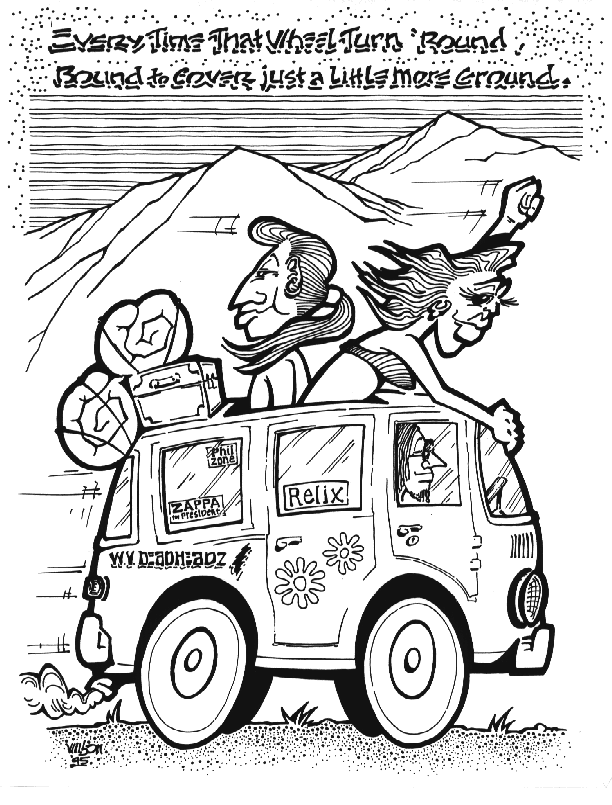 No, it couldn't be all the way out here. So I try weaving around this dense mess of cars and I see the bmw about five cars ahead of me. Still cant make it out for sure. At this point (I wish you could have seen my face), I was so giddy and anxious. Thinking to myself, I haven't seen a stealie in over 4 months. Its now six cars ahead of me. stoplight and the bmw flies off. I guess l'll never know. But ten minutes later, I'm in a moderately moving center lane and I spot the bmw on the right, stuck in a long line waiting to turn and let me tell you how psyched I was when I confirmed my suspicion. A bright and shiny steal your face plastered on the center of the window of that car. I really wanted to jump out of the car and do something - I don't know. But I couldn't really stop. So I'm thinking (cuz it was a middle aged lady in a business suit driving the car), how that stealie got there. Maybe a child whose studying in the states? That's my only guess, because, I've looked, there is no sign of Dead life around here. No Cds, tapes, posters, magazines...I've even looked on the net. That's OK though - it really got me pumped up for the rest of the day.